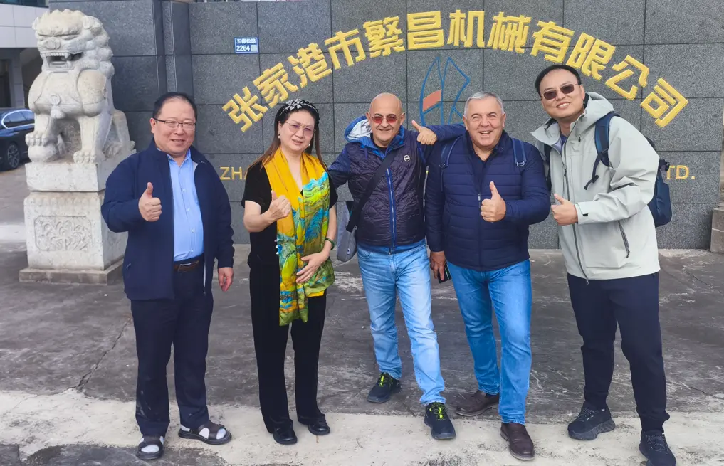 Em 2025, a empresa italiana LAMPLAST SRL adquiriu duas unidades de mistura a frio e a quente SRLW-1300/5000 totalmente automáticas da nossa empresa. A foto mostra os dois chefes desta empresa inspecionando os produtos acabados em nossa fábrica.